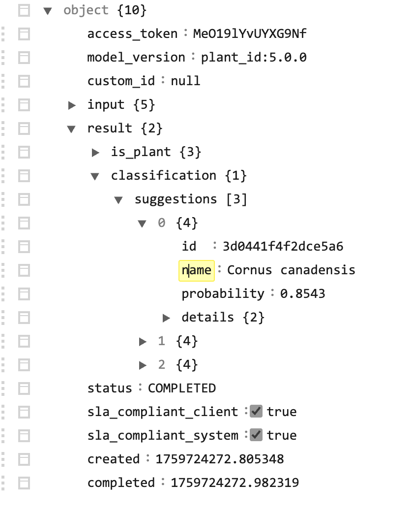 I’m brand new to this so bear with me. I’m trying to send a photo to a plant ID API and have it return the plant’s name. I’ve watched a bunch of tutorials and asked chat gpt in every way I can and I’m stumped! It keeps coming back as “Null.” My photo seems to be uploading and sending off fine (I’m uploading to cloudinary and then sending the URL to the API).